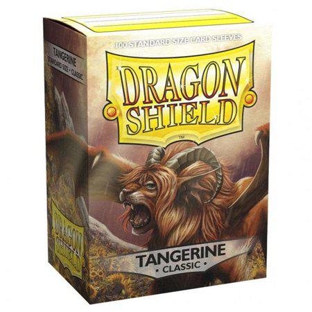 Enhance your game with Classic Tangerine Dragon Shield Sleeves in a strong, printed cardboard box. These sleeves are 67x91mm with no PVC, ensuring durability for your favorite decks with original dragon artwork. The box design holds up to 100 gaming cards with maybe even some extra sleeve capacity for easy storage of your decks.
